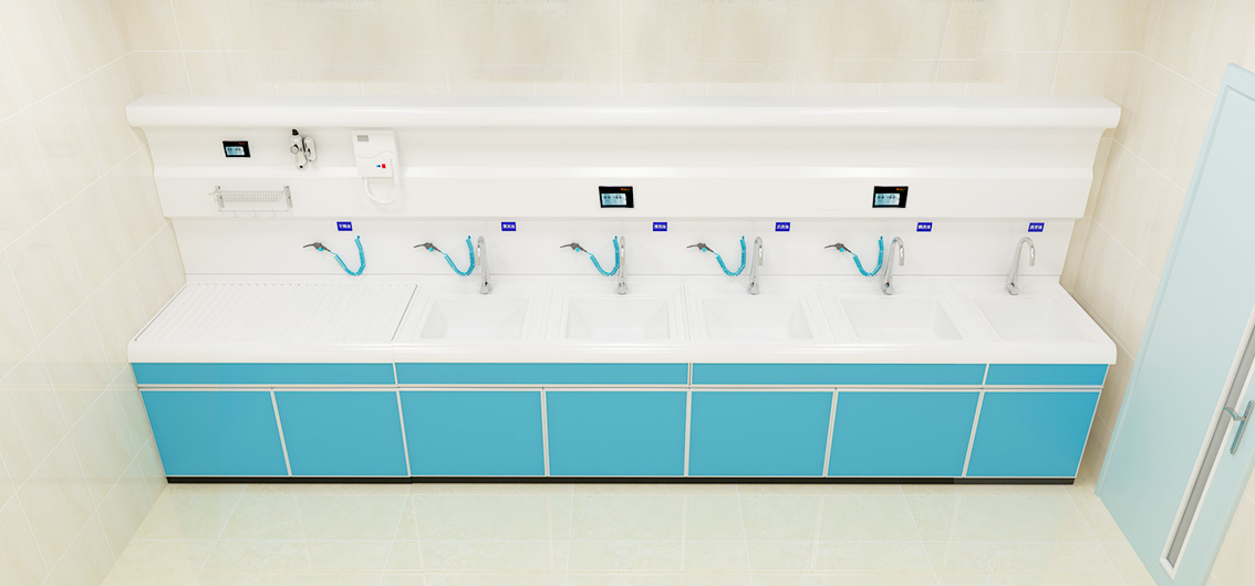 內窺鏡中心集臺面,洗消槽為一整體,抗壓強度高,彈性好,耐侯性優良,抗氧化,耐強酸強堿表面光滑,易清洗,防水防潮,防污染